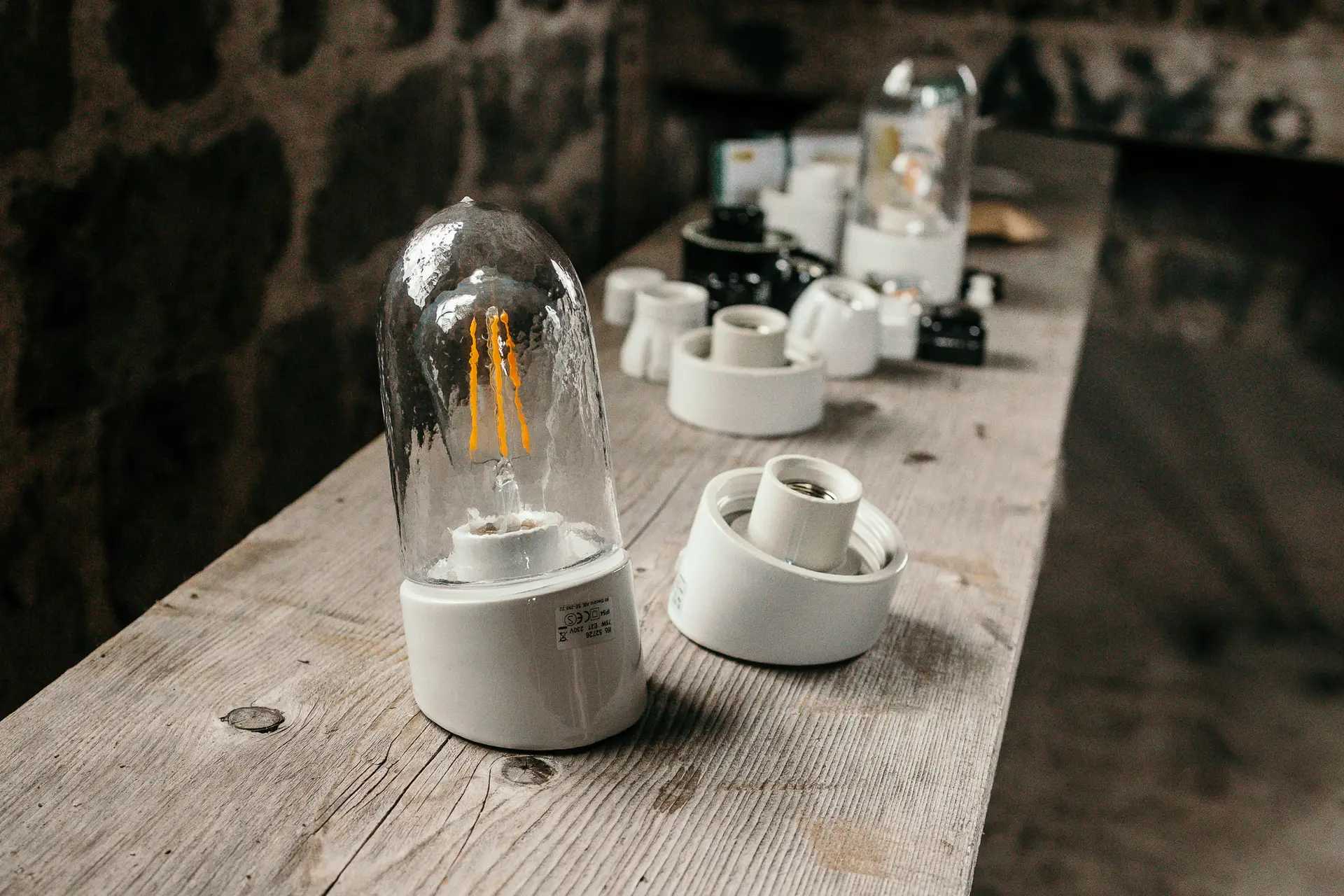 Straight single lamp holder of glazed porcelain. White color. Intended for outdoor wall and ceiling. Cable entry in the side of the base suitable for outdoor electricity.