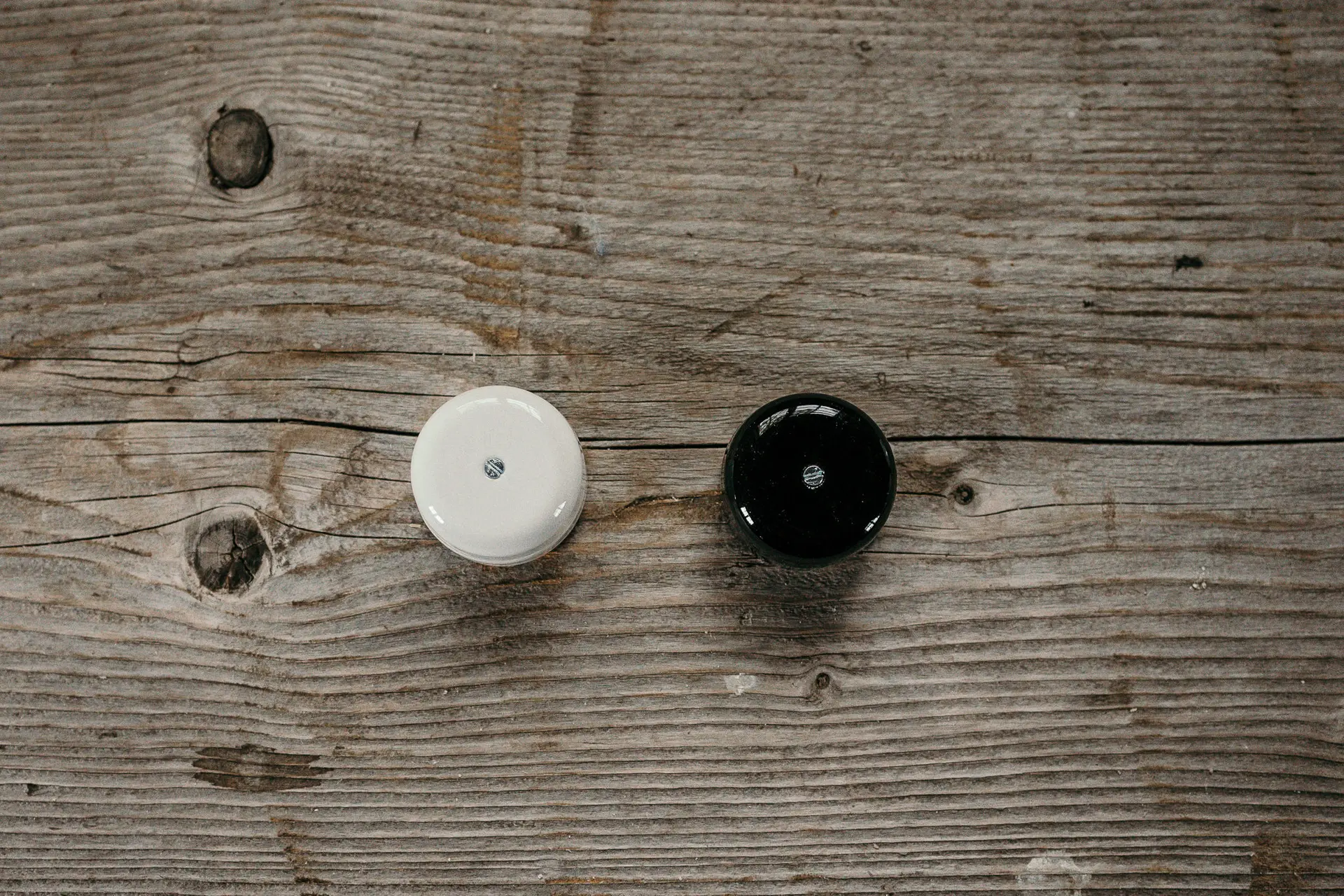 Rund, slät kulodosa för utanpåliggande koppling i vitt porslin. Nytillverkad efter klassisk förlaga.