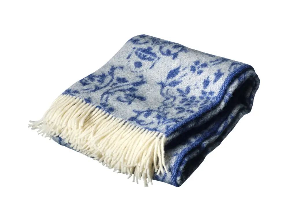 Varm pläd vävd i hundra procent ekologisk lammull. Vävningen inverterar mönstret och färgerna så att pläden blir vändbar. Ullpläden är inspirerad av vår egen tapet Nästgårds i bearbetning av formgivare Kerstin Landström. Mönstret är tidstypiskt från andra halvan av 1800-talet med ett elegant enfärgat medaljongmönster.