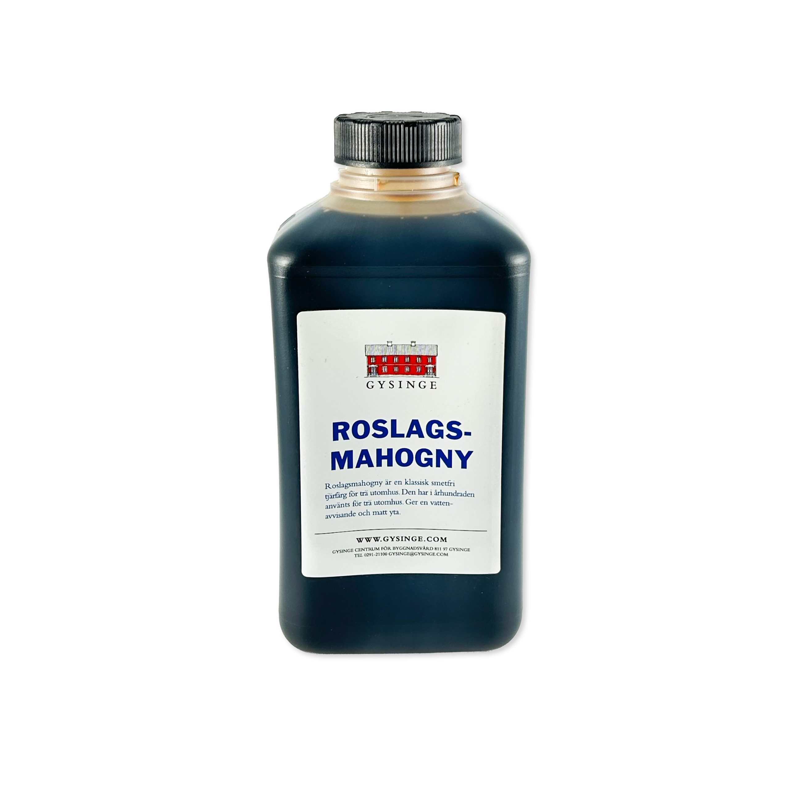 Gysinges Roslagsmahogny finns i två kulörer, Naturbrun och Kimrökssvart. Den naturbruna varianten kan pigmenteras med valfritt pigment om annan kulör önskas. Ytor behandlade med Roslagsmahogny kan vid behov övermålas med annan tjärbaserad färg. Denna typ av behandling har använts i århundraden för att skydda utsatta träytor som verandagolv, trappor, bryggor, uthusdörrar och båtar. Även järnbeslag som portgångjärn och spikhuvuden får ett effektivt rostskydd.