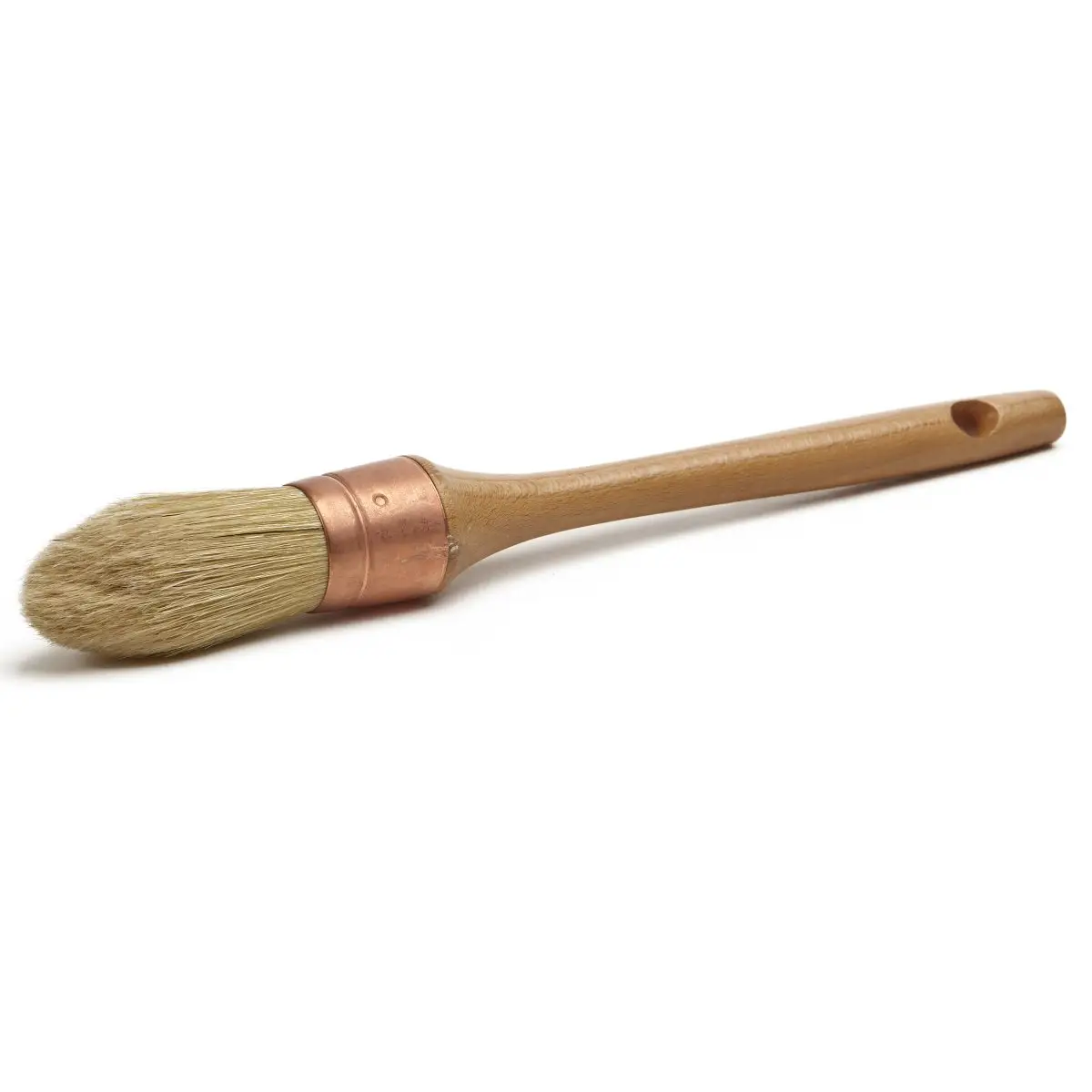 Spröjspensel Natur är en traditionell italiensk/fransk pensel som används vid precisionsmålning av exempelvis fönster, spröjs, foder, lister, snickerier och hörn. Spetsig topp ger en extra bra precision och åtkomst. Robust träskaft som ligger bekvämt i handen. Tillverkad av 100% 90-tops ljus svinborst för en hög färgupptagning och slät yta. Svinborst är naturligt konisk och kluven i topparna vilket ger en bra precision och yta. Diameter 16,5 mm. Längd 27 cm